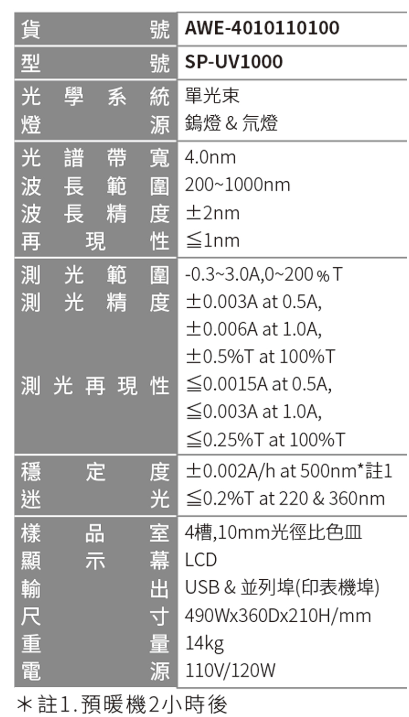 ˙隨機搭贈4個光徑10mm玻璃及2個10mm光徑石英比色槽
