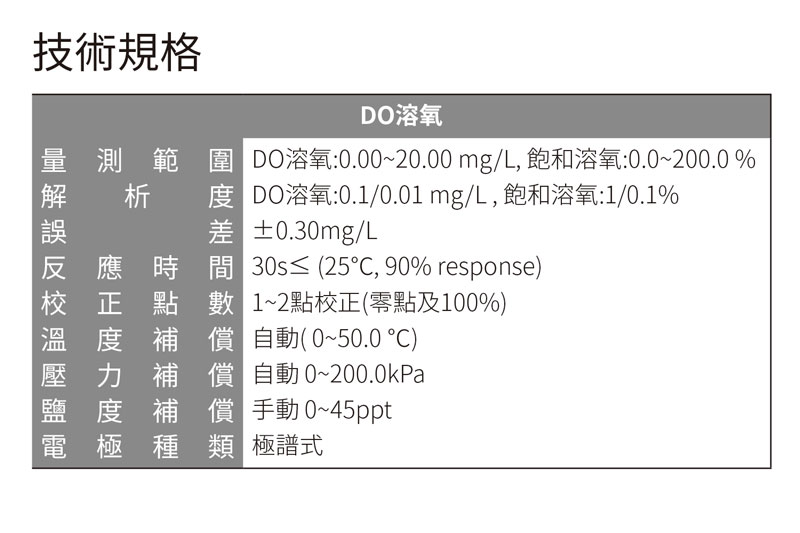˙整套包含主機一台、極譜式溶氧電極DDO01-2M 1支、溶氧電極電解液30mL、溶氧電極膜頭3個、電極支架、說明書、變壓器