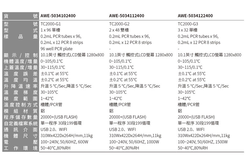 TC2000-G1/G2/G3 是分子生物學領域中不可或缺的實驗室設備,可應用於基因測序、基因複製、基因表達、突變檢測等, 並廣泛應用於農業、食品檢測、環境科學、藥物研發等領域。