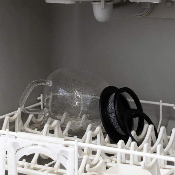本體-耐熱玻璃;附濾網上蓋-聚丙烯;墊圈-矽膠橡膠