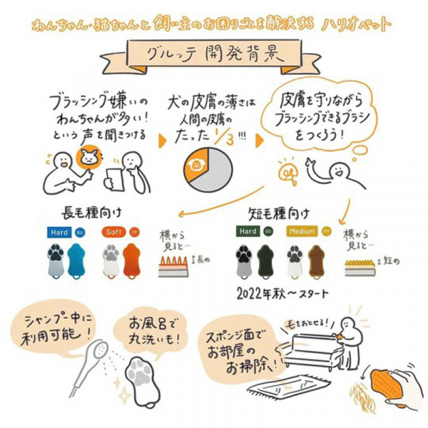 HARIO 寵物專用兩面刷 硬毛 深綠色(PTS-GTH-OG)/軟毛 芥末黃色(PTS-GTM-MDY)