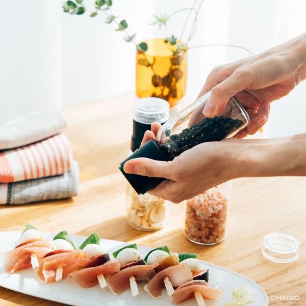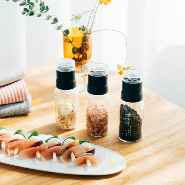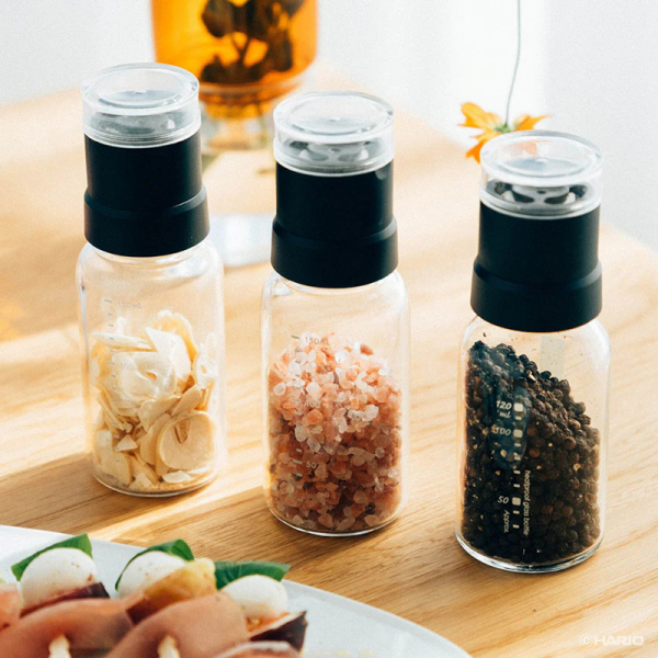 HARIO 黑色椒鹽研磨罐 150ml 玻璃胡椒研磨罐 海鹽研磨瓶 陶瓷研磨芯 調味罐 SMSN-150-B