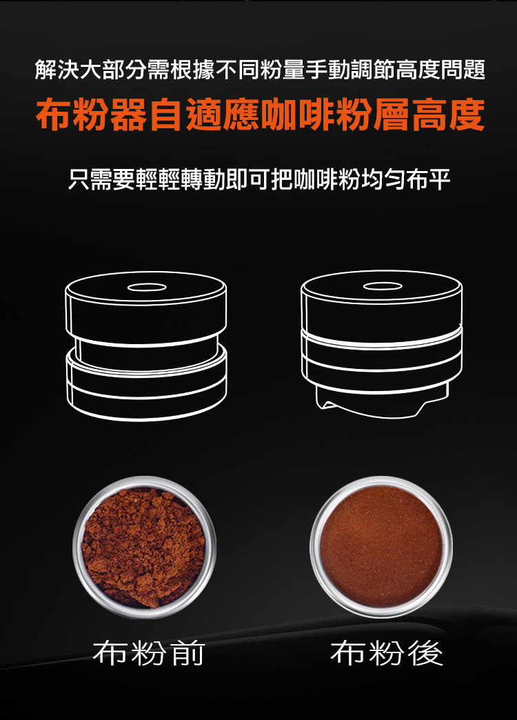 操作彈性高,使用更順手。(實際效果會依研磨度與粉量略有差異)