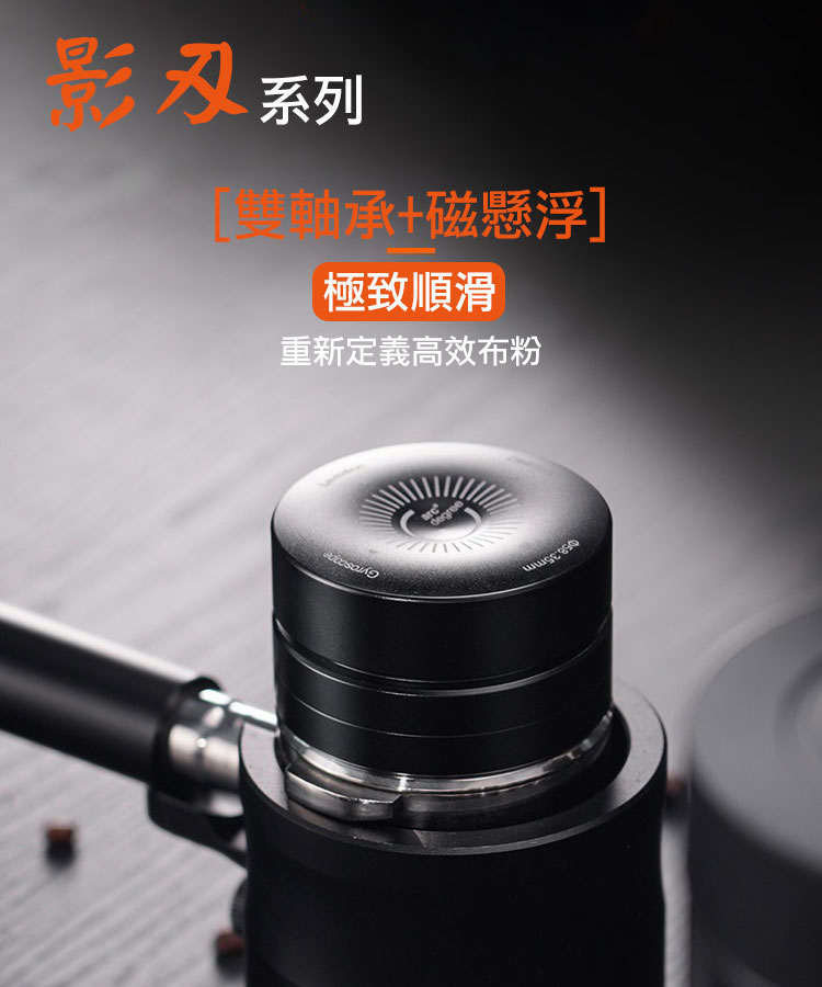 「讓布粉成為一種享受。」 IKAPE 影刃系列打破了傳統布粉器的僵硬感。透過雙軸承系統,你只需指尖輕輕一撥,底座即可流暢旋轉,將不平整的咖啡粉迅速轉化為完美的水平面。