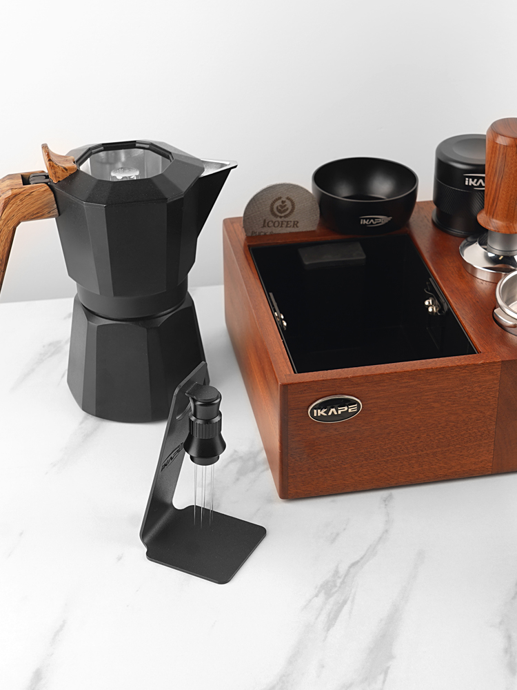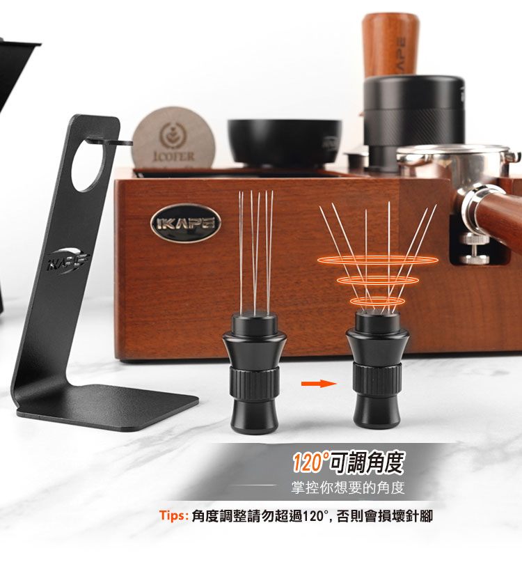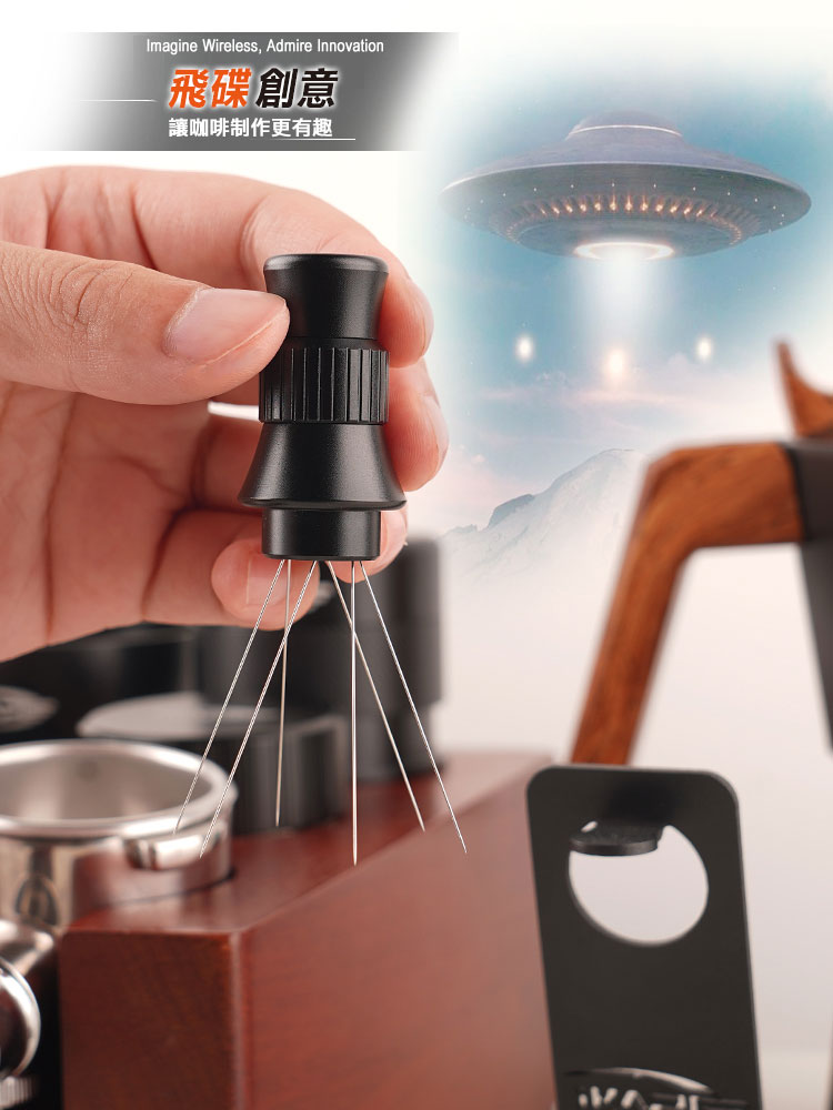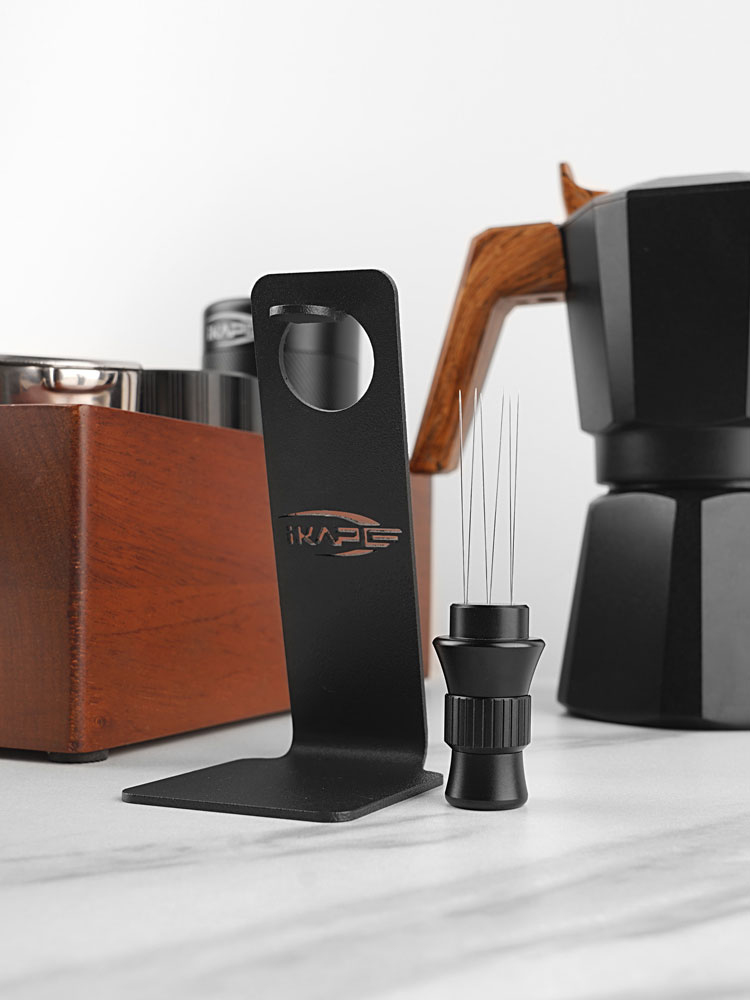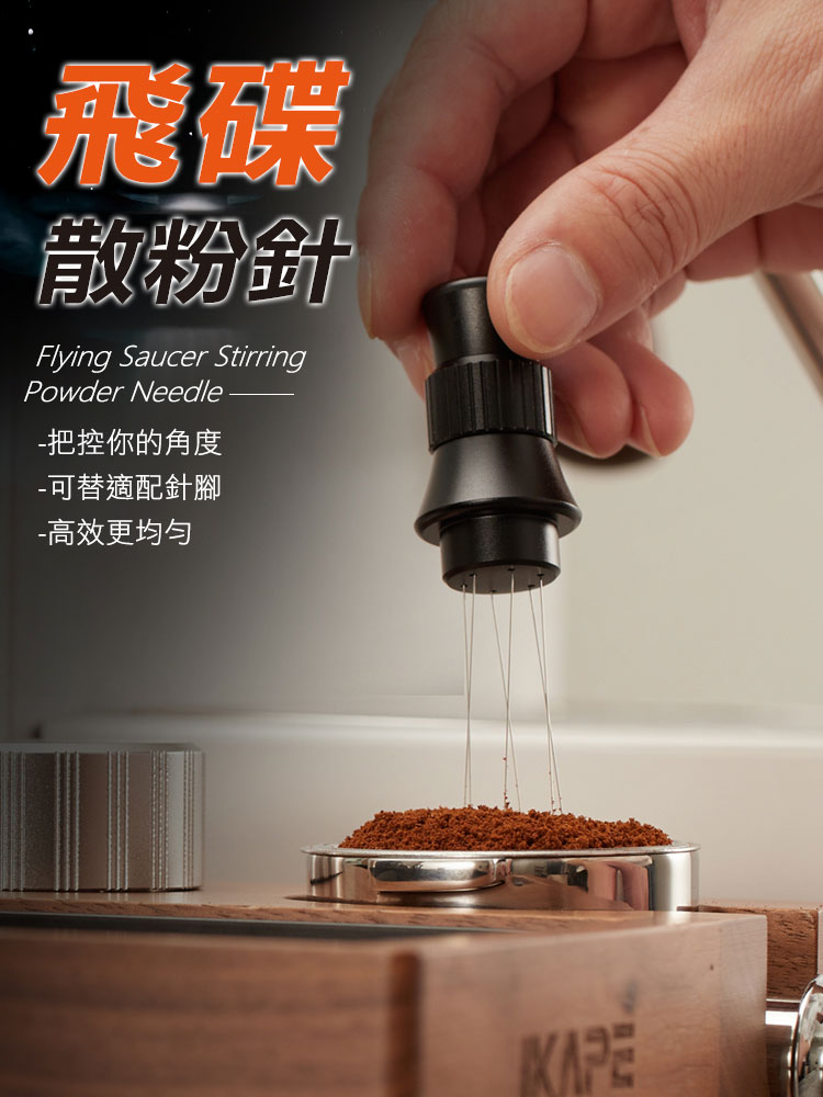 IKAPE 飛碟磁吸散粉針為 WDT 針式散粉工具,透過細針梳理咖啡粉層,有助於打散研磨後產生的結塊、改善粉層集中與不均問題;搭配磁吸飛碟式底座設計,使用後可直接吸附收納,讓操作流程更整齊有序。